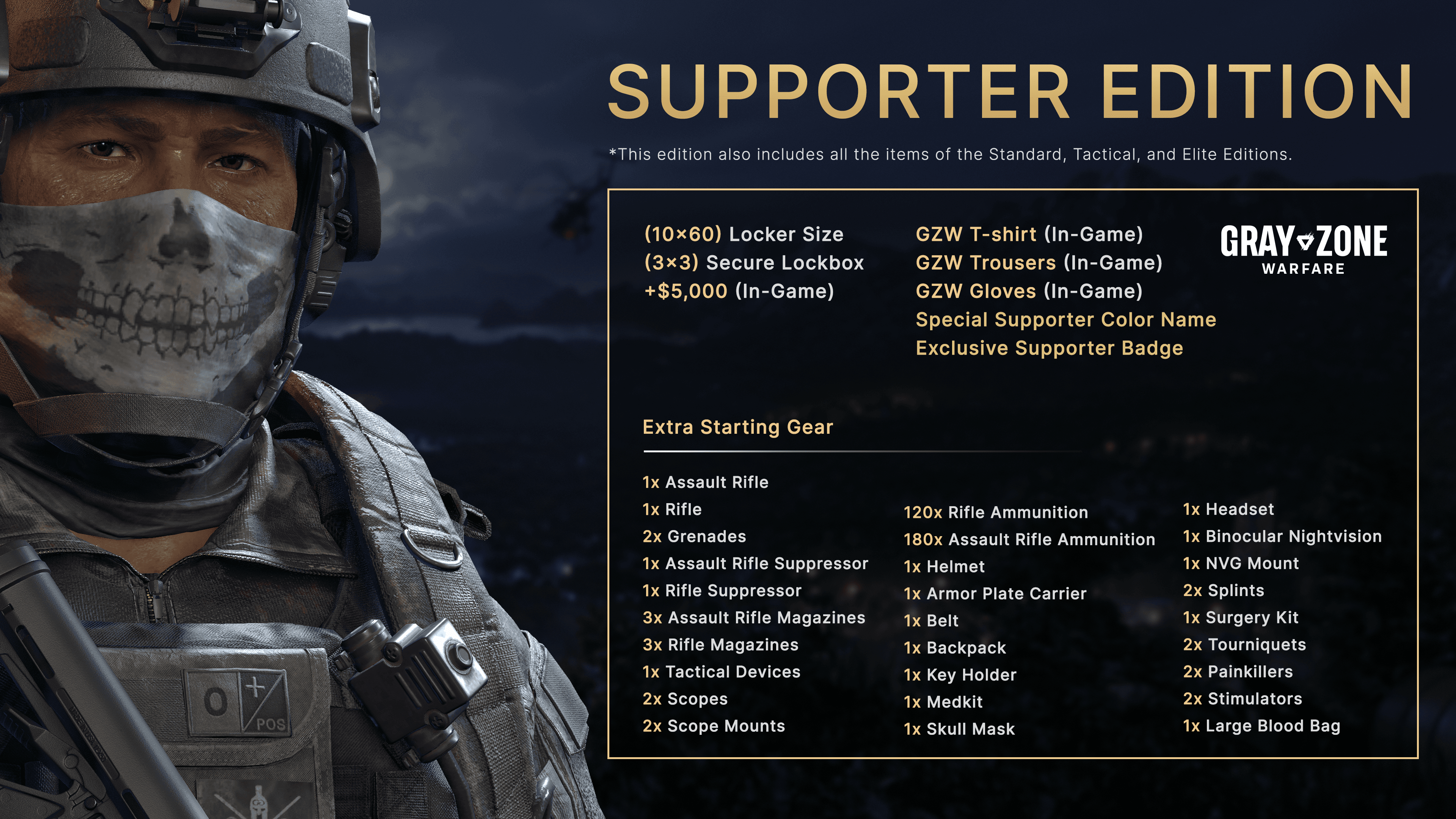 These editions go beyond in-game perks—they're a chance to support the development of Gray Zone Warfare while unlocking exclusive in-game rewards.